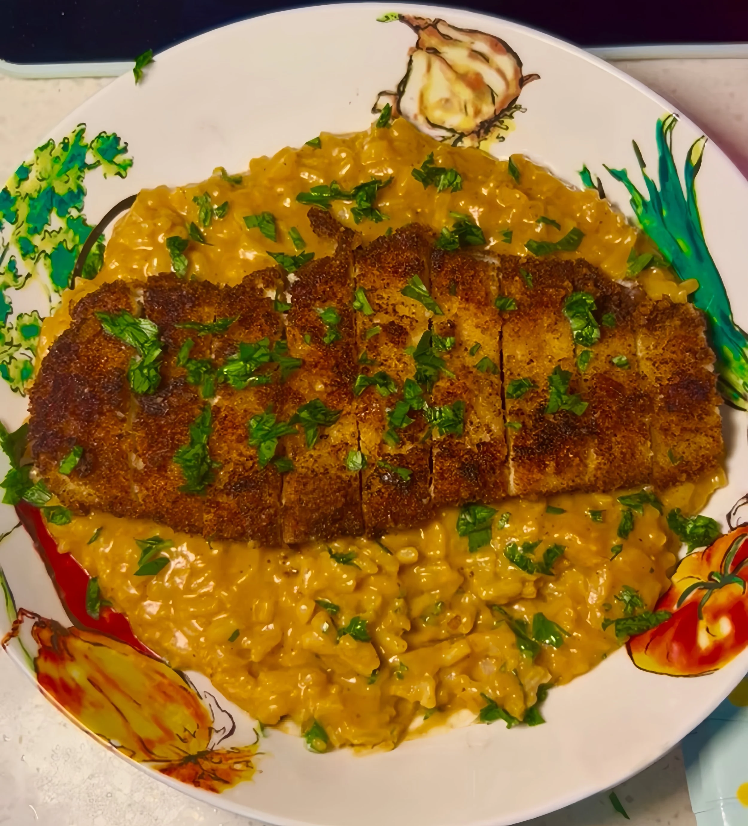Chicken Cutlets with Roasted Red Pepper & Leek Risotto